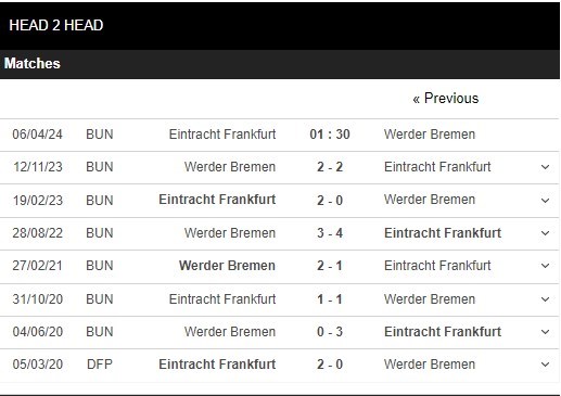 Thống kê đối đầu Eintracht Frankfurt vs Werder Bremen