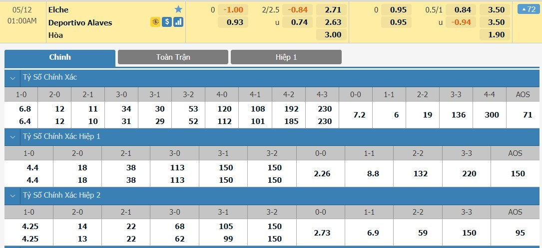 Tỷ lệ kèo cá cược bóng đá trận Elche vs Deportivo Alaves