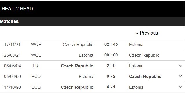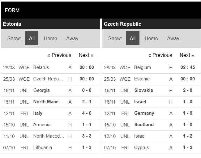 Thống kê phong độ Estonia vs Cộng hòa Séc