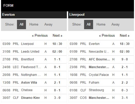 Thống kê phong độ Everton vs Liverpool