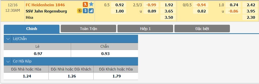 Tỷ lệ kèo cá cược bóng đá trận FC Heidenheim vs Jahn Regensburg