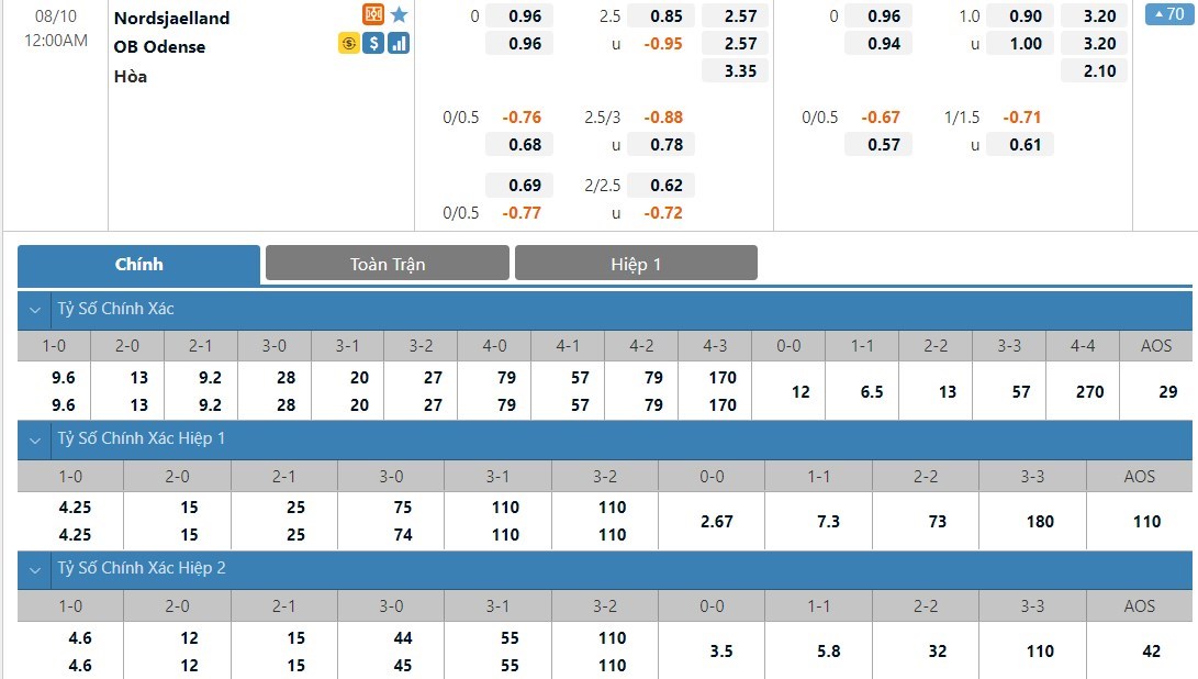 Tỷ lệ kèo cá cược bóng đá trận FC Nordsjaelland vs OB