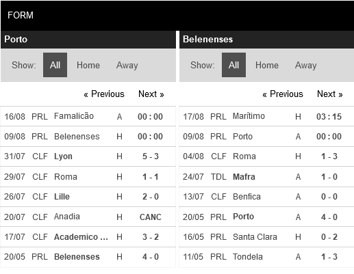 4 trận giao hữu của Porto hè này có số bàn thắng trong hiệp 1 rất chênh lệch. 2 trận kết thúc với tỉ số 0-0 và 2 trận có nhiều hơn 2 bàn thắng. Belenenses thì ổn định hơn khi cả 3 trận đều xuất hiện bàn thắng trong hiệp đấu đầu tiên.