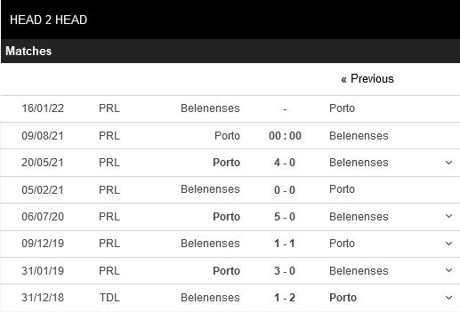 Tuy nhiên, tỉ lệ thắng kèo của Porto chỉ dừng ở mức 30% trong những trận đấu này. Thường thì họ chấp đối phương xấp xỉ 2 bàn nhưng thắng không vượt trội đến thế. Thống kê cũng chỉ ra rằng trong 5 trận gần nhất chấp đối phương 1,5 bàn, Porto chỉ thắng 2 trận. Trái lại, tỉ lệ thắng của Belenenses cao hơn với 3 chiến thắng.
