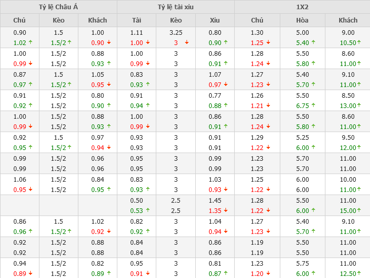 Nhà cái ra kèo tài xỉu cho hiệp 1 tới mức 1,25 bàn. Điều đó cho thấy hầu như chắc chắn hiệp 1 sẽ có bàn thắng. Và với tâm lý sôi nổi ngày đầu ra quân, nhiều khả năng sẽ có nhiều hơn 1 pha lập công trong 45 phút đầu.