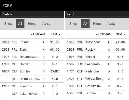 Thống kê phong độ FC Rostov vs Zenit St. Petersburg