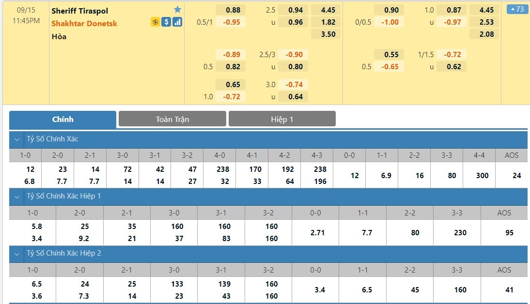 Theo chuyên gia phân tích thị trường cá cược Lucky88, Shakhtar Donetsk được đánh giá cao hơn đối thủ Sheriff Tiraspol và phải chấp mức kèo 0.25 bàn trong hiệp đấu đầu tiên. Song cần nên nhớ đây là sân nhà của Sheriff Tiraspol, nơi mà chủ nhà đang sở hữu phong độ cao cả trong tấn công lẫn phòng ngự. Vì lẽ đó, mà khả năng hai đội chơi cẩn trọng trong hiệp 1 và phải chờ đợi sang hiệp 2 để tìm kiếm bàn thắng dễ xảy ra.