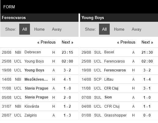 Thống kê phong độ Ferencvaros vs Young Boys