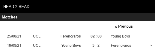 Thống kê đối đầu Ferencvaros vs Young Boys