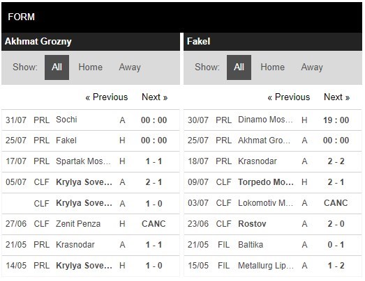 Xem tỷ lệ kèo cá cược bóng đá trực tuyến FK Akhmat vs Fakel