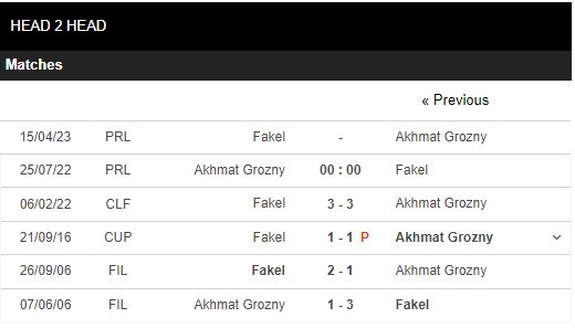 Thống kê đối đầu FK Akhmat vs Fakel