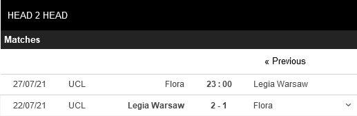Thống kê đối đầu Flora Tallinn vs Legia Warszawa
