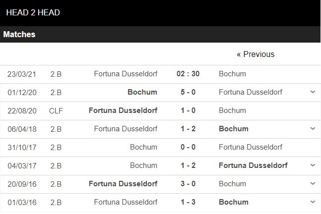 Thống kê đối đầu Fortuna Duesseldorf vs Bochum