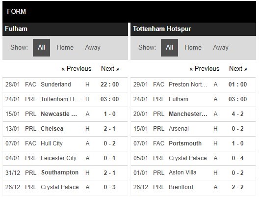 Thống kê phong độ Fulham vs Tottenham
