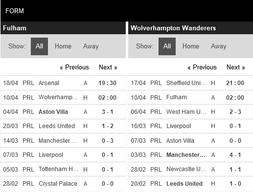 Thống kê phong độ Fulham vs Wolverhampton