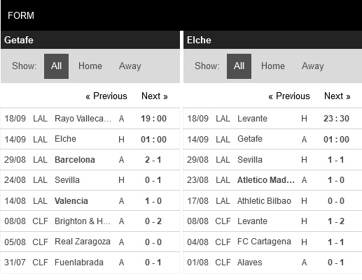 Cũng đụng phải những đối thủ máu mặt ngang Getafe nhưng Elche đạt thành tích tốt hơn đôi chút. Họ cầm hòa Athletic Bilbao ở trận ra quân rồi thua 0-1 trước nhà ĐKVĐ Atletico Madrid. Ở vòng đấu mới nhất, Elche thậm chí còn cầm hòa được Sevilla trên sân nhà.