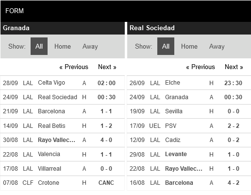 Nhận định bóng đá hàng ngày trận Granada vs Real Sociedad – 00h30 – 24/09/2021 – VĐQG Tây Ban Nha