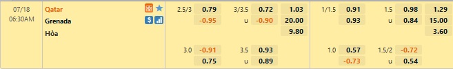 Xem tỉ lệ kèo cá cược bóng đá trực tuyến Grenada vs Qatar