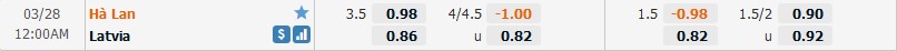 Xem tỉ lệ kèo cá cược bóng đá trực tuyến Hà Lan vs Latvia
