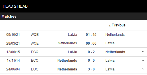 Xét đối đầu, Hà Lan đã thắng không thủng lưới Latvia trong 3 trận gặp nhau. Sau khi danh dự của đội tuyển này bị tổn thương vì trận thua Thổ Nhĩ Kỳ ngày ra quân, hạ sát Latvia là cách duy nhất để thầy trò De Boer nguôi ngoai, đồng thời duy trì tham vọng giành ngôi đầu bảng vòng loại World Cup lần này.