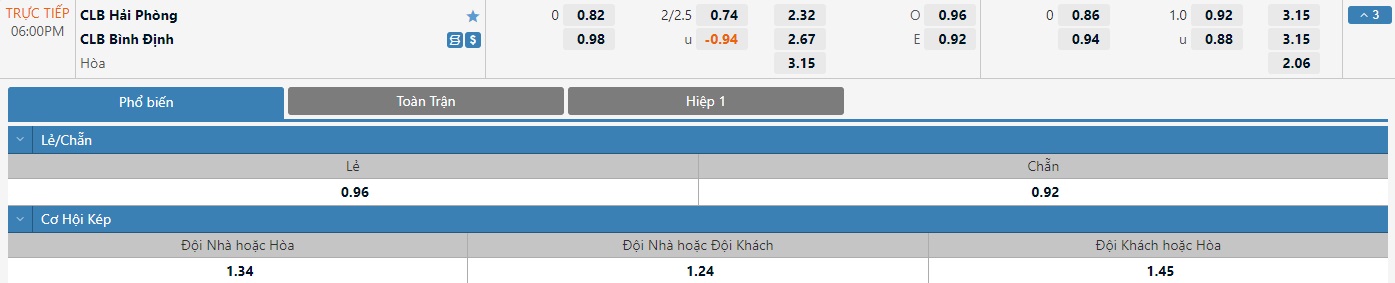 Tỷ lệ kèo cá cược bóng đá trận Hải Phòng vs Bình Định