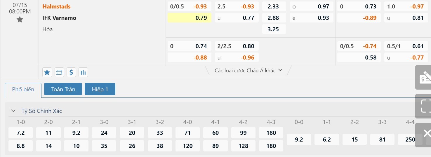 Xem tỷ lệ kèo cá cược bóng đá trực tuyến Halmstad vs Varnamo