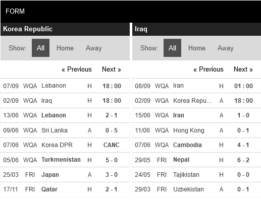 Thống kê phong độ Hàn Quốc vs Iraq