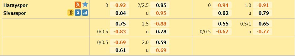 Tỷ lệ kèo cá cược bóng đá trận Hatayspor vs Sivasspor
