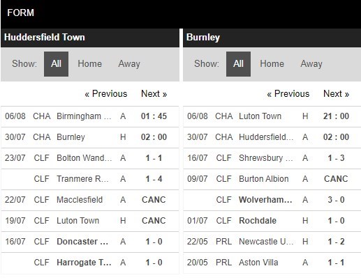 Thống kê phong độ Huddersfield vs Burnley