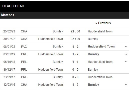 Thống kê đối đầu Huddersfield vs Burnley