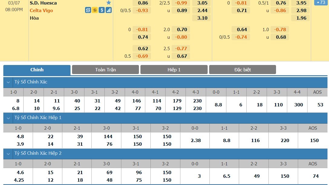 Tỷ lệ kèo cá cược bóng đá trận Huesca vs Celta Vigo