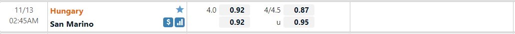 Tỷ lệ kèo cá cược bóng đá trận Hungary vs San Marino