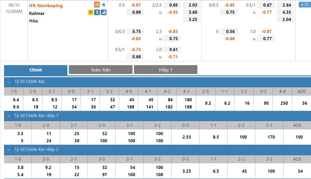Tỷ lệ kèo cá cược bóng đá trực tuyến trận IFK Norrkoping vs Kalmar FF
