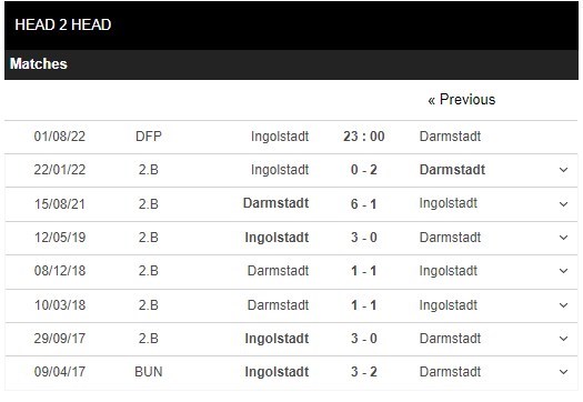 Thống kê đối đầu Ingolstadt vs Darmstadt