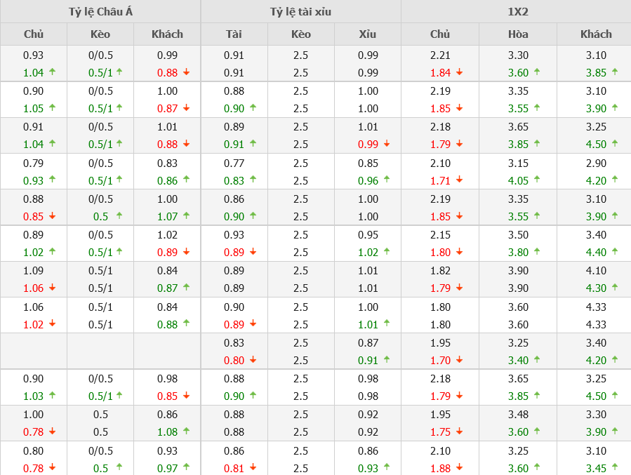 Kèo tài xỉu 2,5 bàn cho thấy trận đấu tới chưa có xu hướng rõ ràng về số lượng bàn thắng. Tuy nhiên, trong 10 trận đối đầu gần nhất của 2 đội thì có tới 7 trận cho kết quả xỉu. Vì vậy, có thể trận đấu tới cũng không có nhiều bàn thắng vì tính chất quyết định khiến các đội bóng chơi dè dặt hơn.