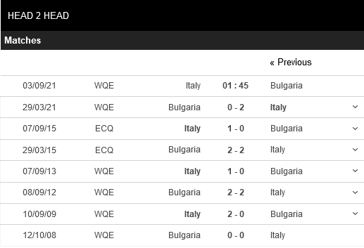 Italia đã thắng 4 trong 6 trận gần nhất trước Bulgaria và giữ sạch lưới trong những chiến thắng này. Bulgaria thì đã thua 4 trong 6 trận gần nhất và không thể ghi bàn trong 4/5 trận. Do đó, có thể kỳ vọng đội bóng này tiếp tục tịt ngòi ở trận đấu tới.