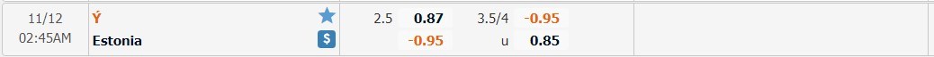 Tỷ lệ kèo cá cược bóng đá trận Italia vs Estonia