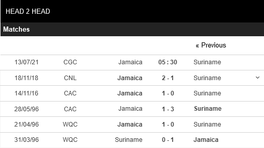 Thống kê phong độ Jamaica vs Suriname