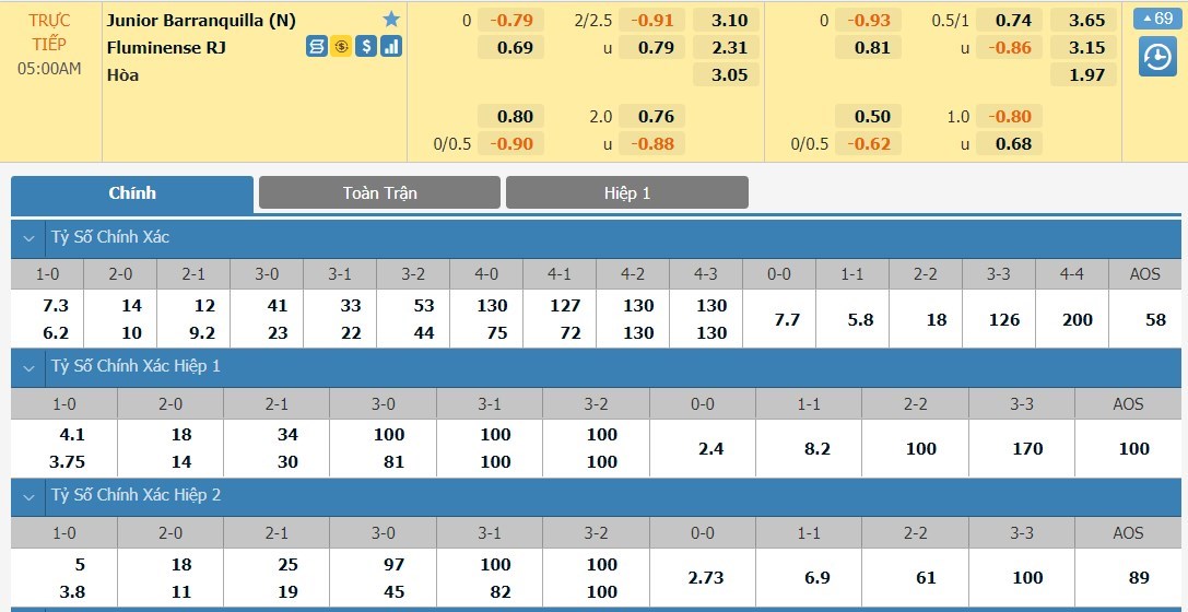 Tỷ lệ kèo cá cược bóng đá trực tuyến trận Junior FC vs Fluminense