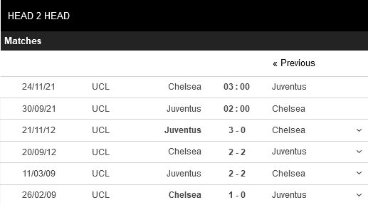 Theo chuyên gia phân tích thị trường cá cược Lucky88, thành tích đối đầu giữa Juventus và Chelsea là rất cân bằng. 2 đội đụng độ nhau 4 lần, mỗi đội có 1 chiến thắng và 2 trận hòa.
