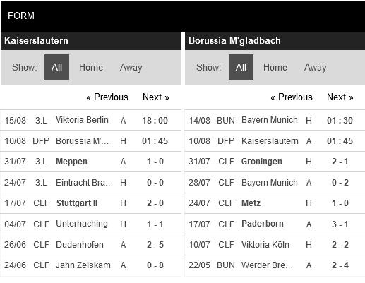 Cuộc gặp gỡ Kaiserslautern ở Cúp Quốc gia Đức có thể coi như một trận đấu nữa để Monchengladbach làm nóng trước mùa giải mới. Tuy vậy, họ chắc chắn vẫn phải tung ra một đội hình mạnh ngay từ hiệp 1 để có thể dứt điểm trận đấu sớm và chuẩn bị cho trận chiến với Bayern Munich ngay ở ngày mở màn của mùa giải mới.