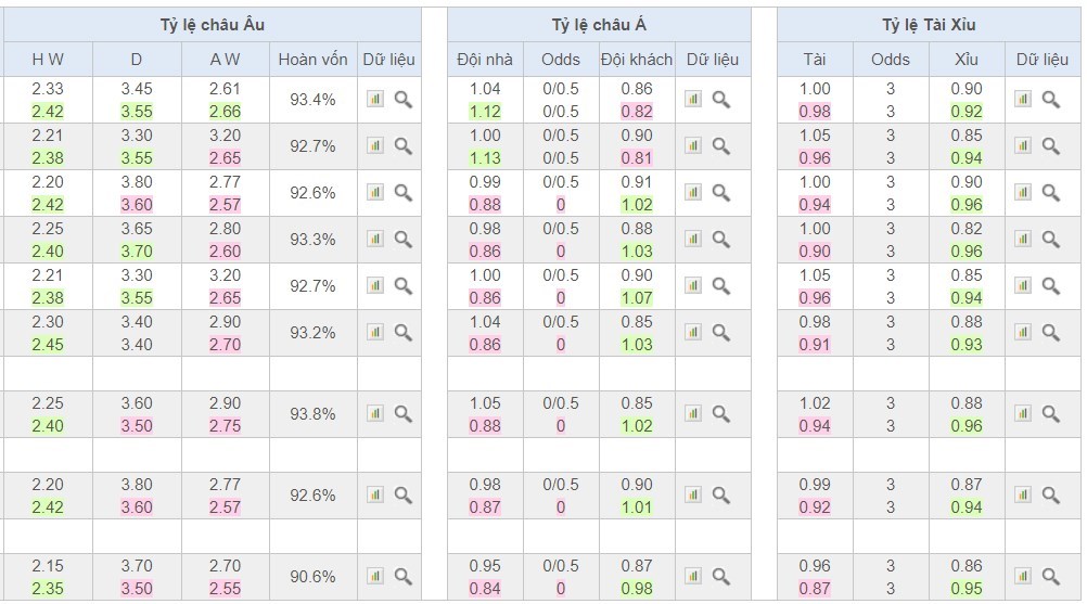 Chu kỳ lên xuống tỷ lệ kèo Lazio vs Atalanta