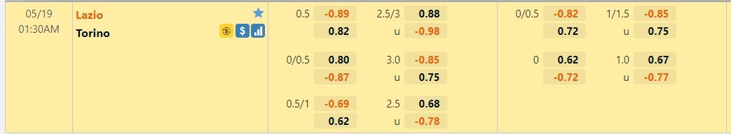 Tỷ lệ kèo cá cược bóng đá trực tuyến trận Lazio vs Torino