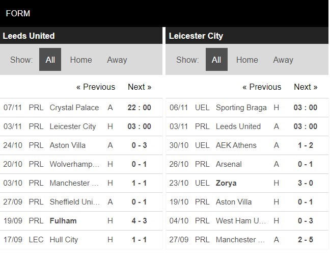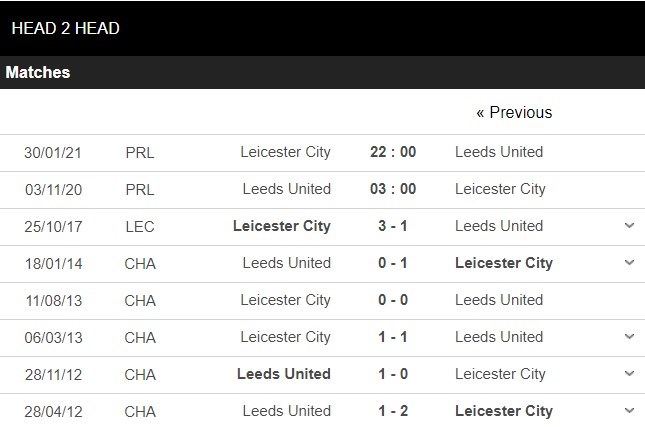 5 lần đụng độ gần đây nhất giữa 2 đội, Leeds chỉ thắng 1, hòa 2 và thua 2 trước Leicester. Mùa giải năm nay, Leeds đã trải qua 4 trận thi đấu tại Elland Road ở mọi đấu trường và thành tích họ có là 1 thắng, 2 hòa và 1 thua nếu tính ở thời gian chính thức. Trong khi đó, Leicester đang thể hiện rất tốt khi mà toàn thắng 5 trận sân khách gần nhất: trong đó có cả những màn đụng độ với Arsenal lẫn Manchester City. Kinh nghiệm và bản lĩnh của bầy cáo giúp ta tự tin hơn vào 3 điểm cho đội khách ngay ở Elland Road.