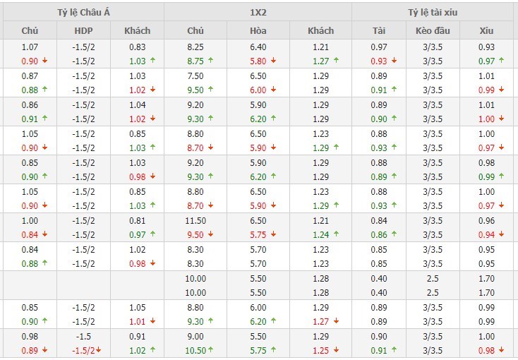 Ở 5 lần gần nhất hai đội bóng này đụng độ nhau trực tiếp thì đã có 3 trận đấu kết thúc với tổng số bàn thắng từ 4 trở lên. Các nhà đầu tư nên tin tưởng vào khả năng nổ Tài ở cuộc đối đầu này với tỷ lệ tài xỉu là 3 1/4 trái.
