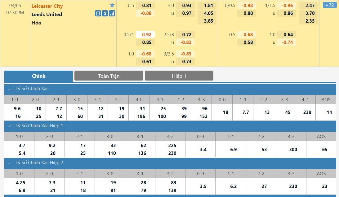 Trong 5 lần gần nhất hai đội chạm trán với nhau thì có tới 3 trận đấu kết thúc với tổng tỉ số từ 4 bàn trở lên nhưng nhiều khả năng mọi thứ sẽ được thay đổi bởi lẽ Leeds United lúc này đã được dẫn dắt bởi một vị chiến lược gia khác. Trong khi đó, Leicester ngoài việc muốn giành 3 điểm trọn vẹn thì cần phải cố gắng ghi nhiều bàn thắng nhất có thể. Nhiều khả năng trận đấu này sẽ nổ Tài.