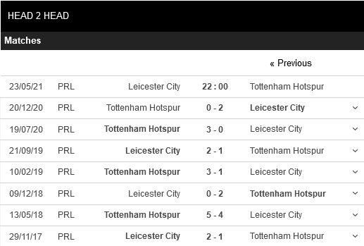 Thống kê đối đầu Leicester City vs Tottenham