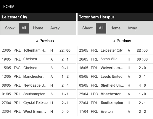 Thống kê phong độ Leicester City vs Tottenham