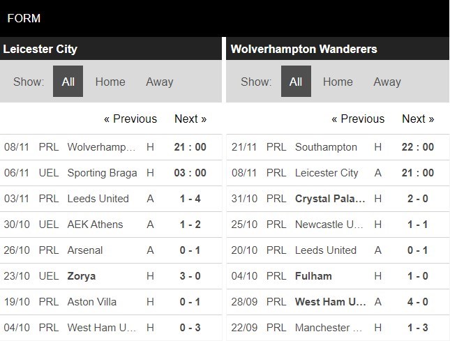 Với 15 điểm, thầy trò Brendan Rodgers leo lên vị trí thứ 2 trên BXH sau 7 trận đã đấu tại giải Ngoại hạng Anh mùa này và chỉ kém ngôi đầu của nhà ĐKVĐ Liverpool đúng 1 điểm mà thôi. Rõ ràng, khởi đầu tốt là thứ mà Leicester có ở mùa giải năm nay và để tránh khỏi việc tụt hơi ở mùa giải năm ngoái, họ sẽ cần phải duy trì sự ổn định. Ở Europa League, đội bóng chủ sân King Power hiện tại có 2 thắng ở 2 lượt trận đầu tiên và có cơ hội lớn để vượt qua vòng bảng. Với phong độ đang đi vào quỹ đạo ổn định, Leicester City hoàn toàn tự tin để hướng tới mục tiêu giành 3 điểm trước Wolves.