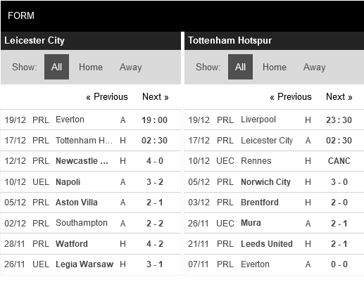 Thống kê phong độ Leicester vs Tottenham